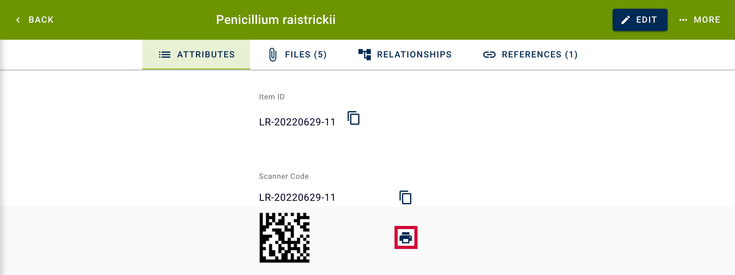 - Click on the printer icon next to the barcode image.